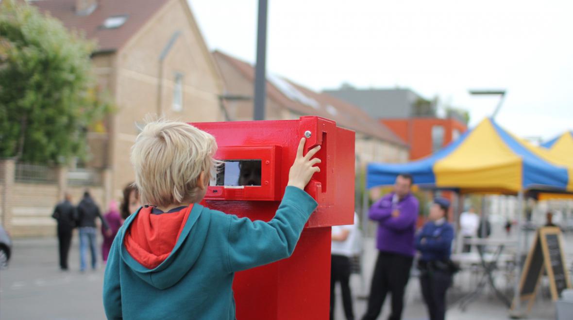 When you look through the binoculars, instead of seeing the scene physically in front of you, you are transported to a different site. This opening of a real-time window into another location is not unidirectional: when looking into the binoculars, your eye is captured and shown on an urban screen at the observed place. As well as playfully connecting to other cities, and dealing with issues of extended surveillance.