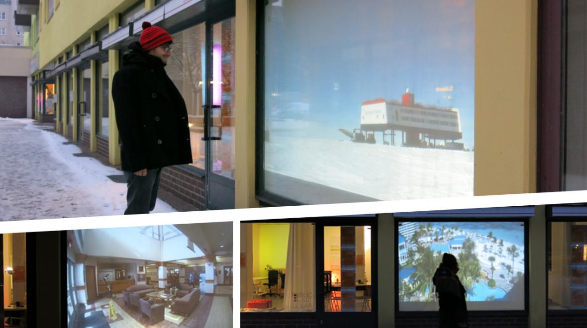 The Urban Media Kitchen on the 23 January 2014 opened the ‘Telepresent Gallery’, a live webstream projection by Public Art Lab. The ‘Telepresent Gallery’ allowed the public in Wedding to zoom into other sceneries and see the world from the perspective of a surveillance camera. In contrast to edited videomaterial the ‘Telepresent Gallery’ solely uses video sniffed footage; material that was captured from the live feed of a surveillance camera (Closed-circuit television camera, CCTV).