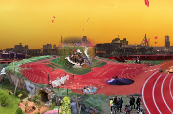 The piece is realised through intricate video techniques combining concrete places and characters in our daily life experience: architecture, people and symbols from a globalised world, Helsinki and Berlin. It plays with the themes of urbanity / periphery, rationality/ irrationality, tourism, sports and ecstasy.