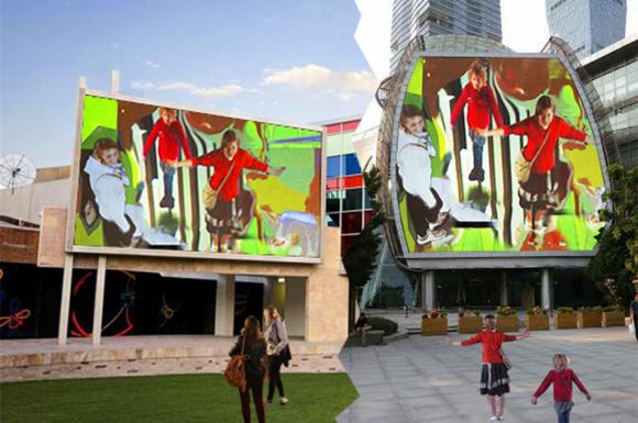 The British artist duo Paul Sermon and Charlotte Gould examine in their interactive art installations, the creative and cultural potential of urban screens and deal with the issue of telepresence.